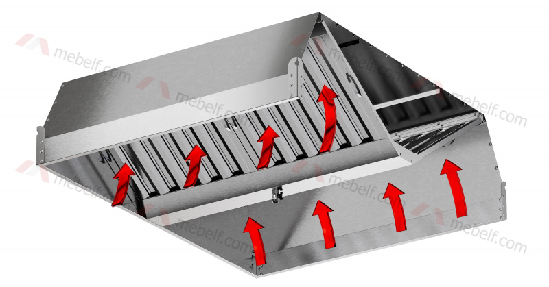 - Зонт вытяжной нержавеющий островной ЗВН04 – зонт островной выполнен из нержавеющей стали AISI430 толщиной 0,7 мм и оснащен встроенными нержавеющими жироуловителями для удаления жира. Имеет 1 врезку для оттока воздуха (размер врезки по согласованию)