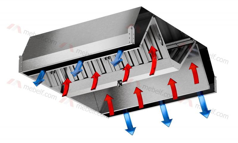 - Зонт приточно-вытяжной нержавеющий островной ЗВНП04 – зонт островной приточно-вытяжной выполнен из нержавеющей стали AISI430 толщиной 0,7 мм и оснащен встроенными нержавеющими жироуловителями для удаления жира. Имеет 1 врезку для оттока и 2 для притока воздуха (размер по согласованию)
