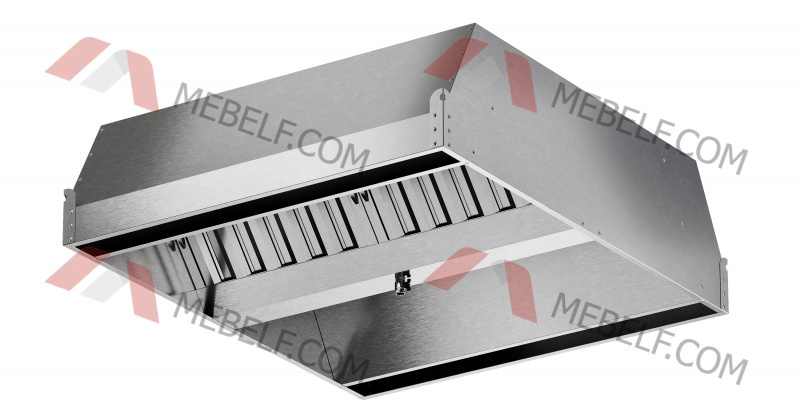 - Зонт вытяжной нержавеющий островной ЗВН04 – зонт островной выполнен из нержавеющей стали AISI430 толщиной 0,7 мм и оснащен встроенными нержавеющими жироуловителями для удаления жира. Имеет 1 врезку для оттока воздуха (размер врезки по согласованию)