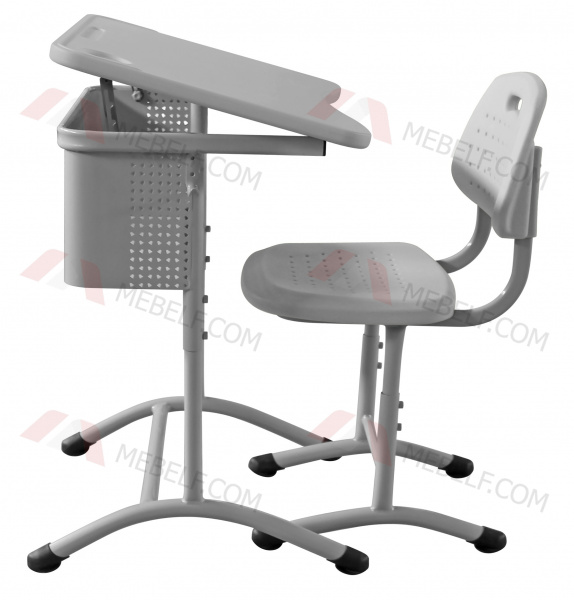 | Школьный стол с наклонной столешницей ШСТ15 и стул ШС03, серый |